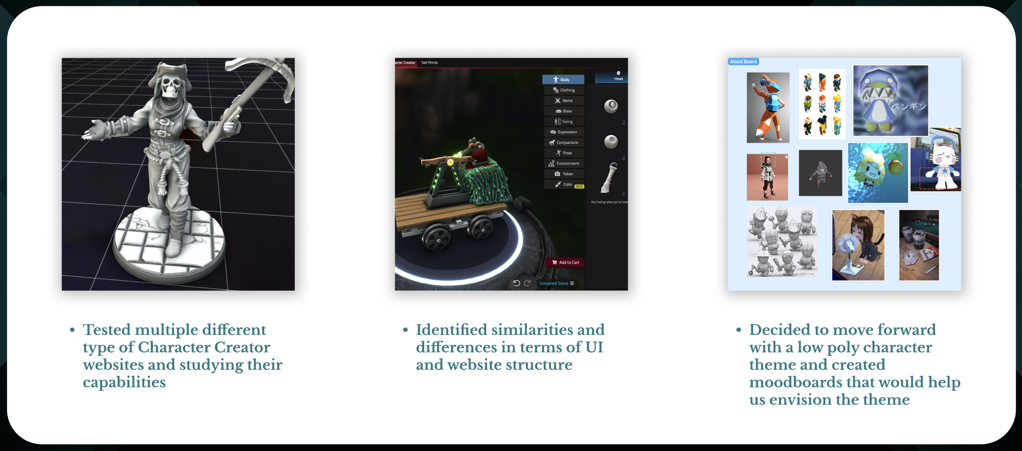 Next, after finalizing our main overarching concept to being a Character Creator we began to conduct action research.